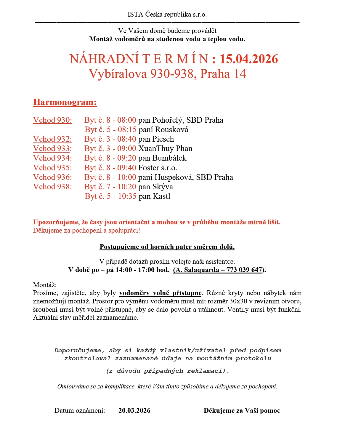Zpět na všechny články23. 3. 2026Montáž vodoměrů na studenou vodu a teplou vodu - Náhradní termíny Vybíralova 930-938 15.04.2026nahradni_terminy_vybiralova_930-938_15.04.2026.pdf nahradni_terminy_vybiralova_930-938_15.04.2026.pdf (200.34 KB)